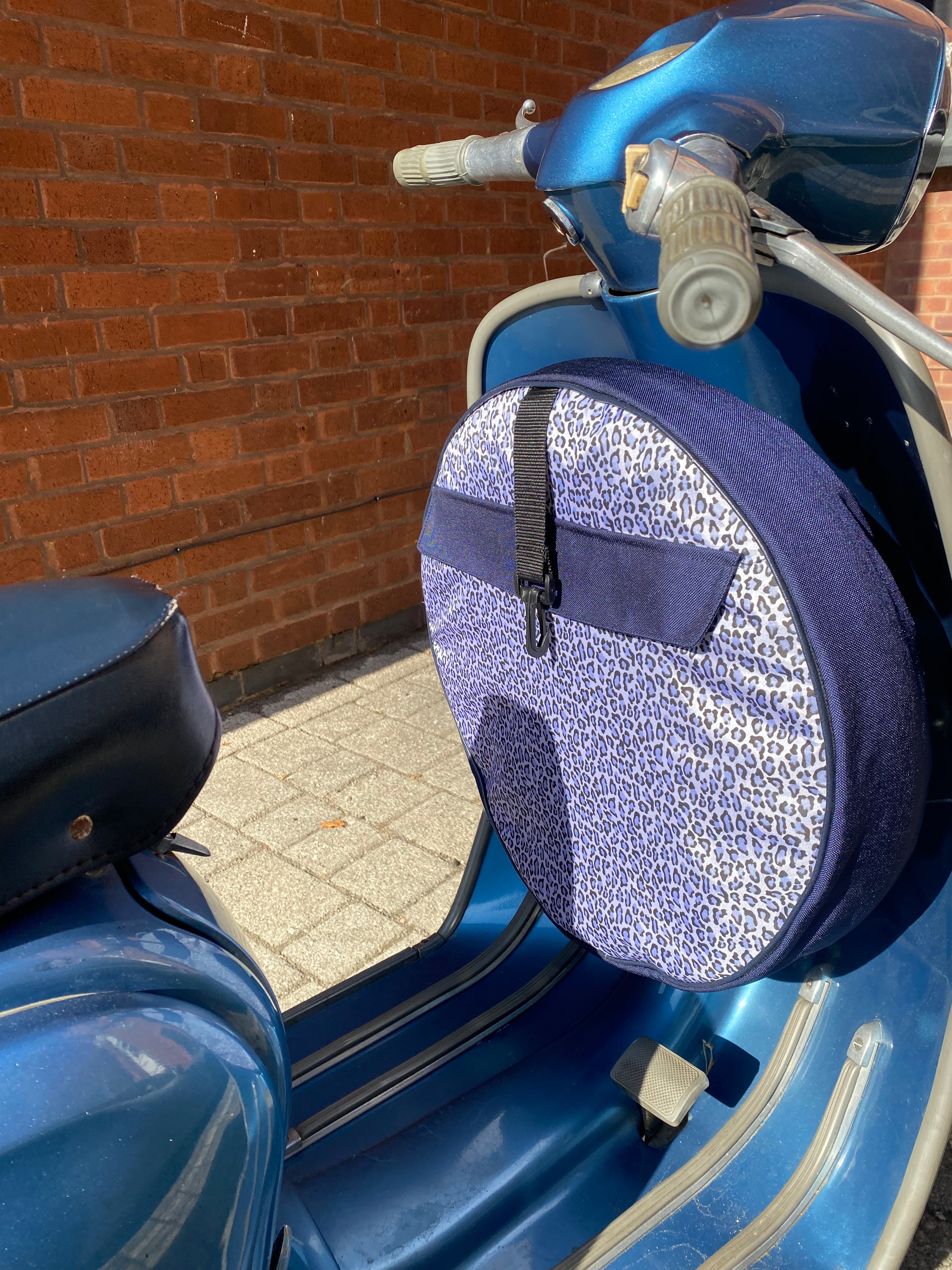 I've been going to IOW since 2001 and my original 1960's spare wheel cover has finally perished. The pouches on inner leg-shield spare wheel covers are ideal for daily run usage. Just enough for a laptop, newspaper, baguette, 7" records etc. All is not lost i've made some here with a couple of modern adjustments: